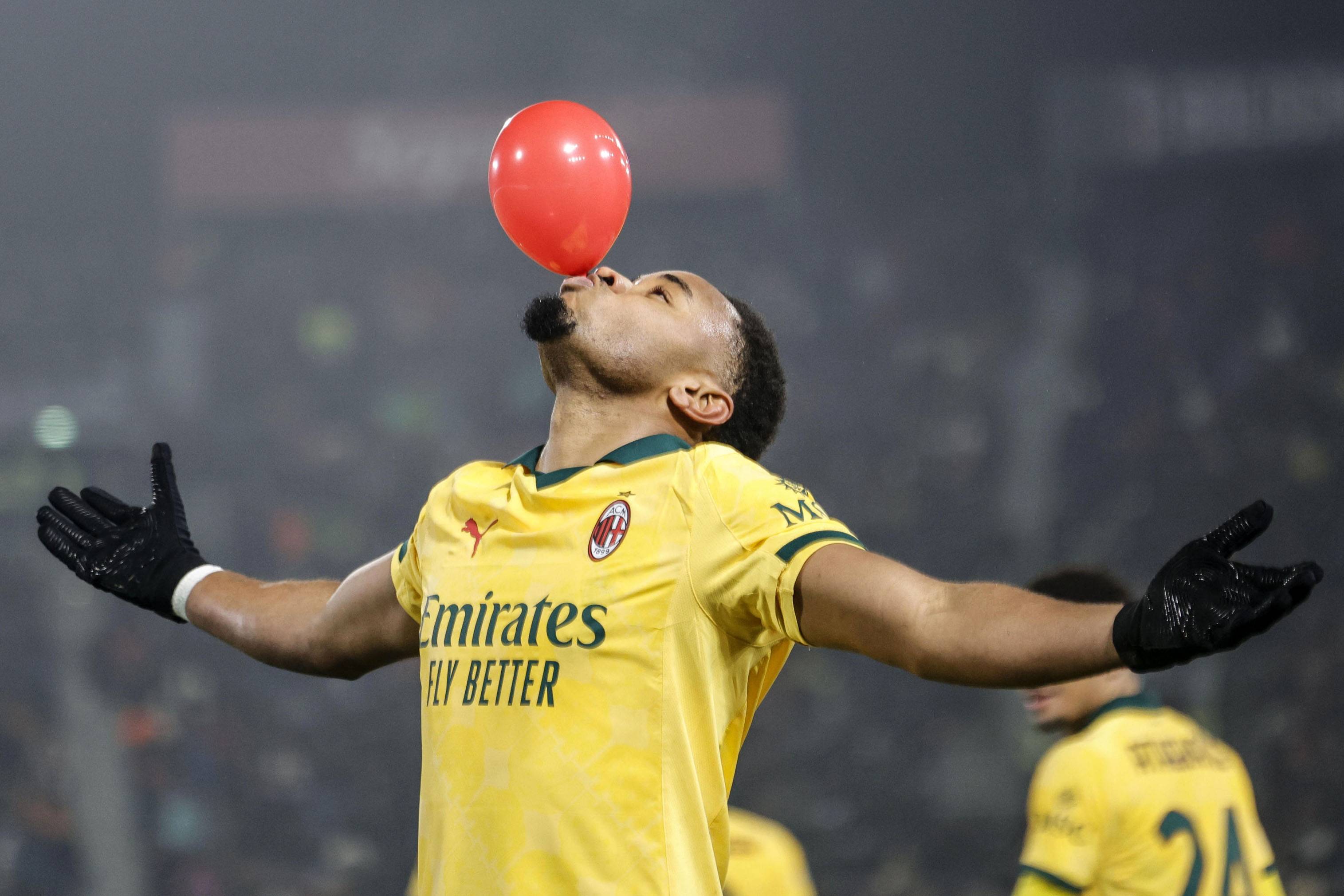2月3日,AC米兰队球员奇克庆祝攻入球队首球。 新华社/欧新