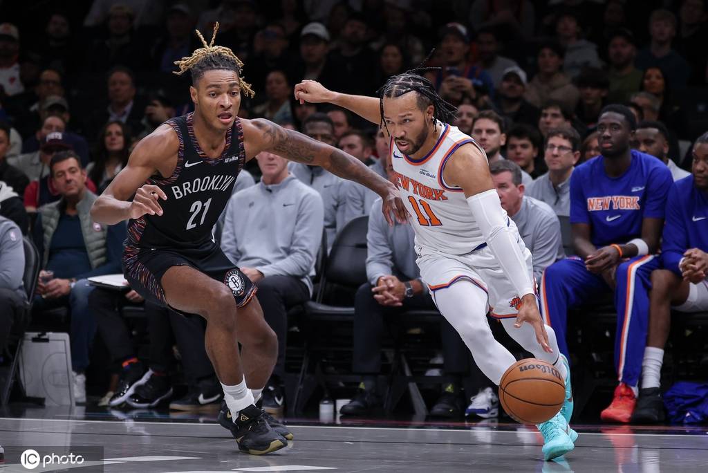 尼克斯队首发:卡尔-安东尼-唐斯、杰伦-布伦森、米卡尔-布里奇斯、迈尔斯-麦克布莱德、约什-哈特